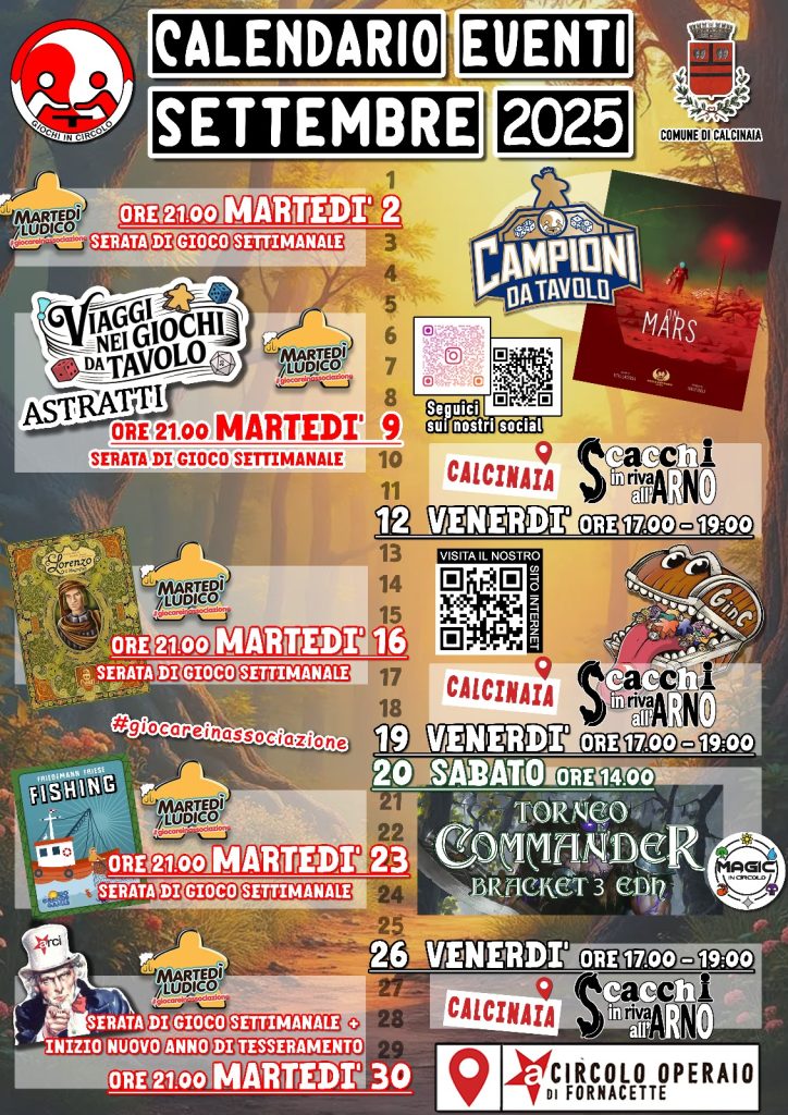 Vi ricordiamo inoltre che ogni martedì sera vi è la serata settimanale giochi da tavolo e ogni giovedì sera quella dedicata al playtest di prototipi.