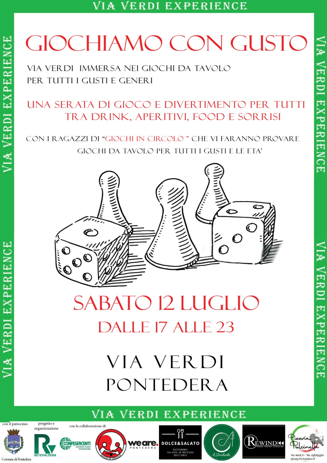 Salve a tutti, siamo orgogliosi di annunciarvi che la Rete Valdera ci ha chiesto di organizzare una serata di gioco da tavolo a Pontedera. Il 12 luglio dalle 17:00 fino alla 23:00 ci verrà dedicato lo spazio di via Verdi dove porteremo molti titoli della nostra collezione e cercheremo di presenterarli a tutti coloro che avranno voglia di mettersi a sedere assieme a noi.